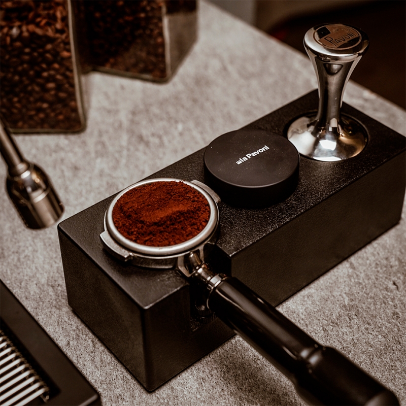 La Pavoni Leveling Tool er et smart værktøj, der gør enhver barista mere effektiv. Denne kaffefordeler er sort og passer til et 58 mm portafilter.