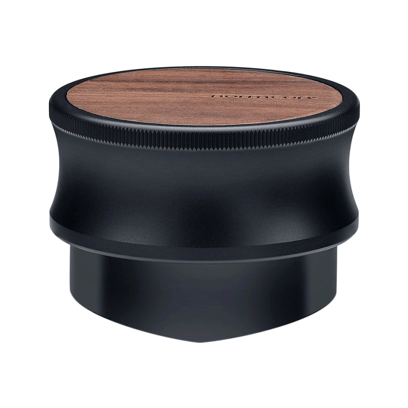 Denne kaffefordeler fra Normcore er sort med en overflade i smukt valnøddetræ, og passer til et 58 mm portafilter.
