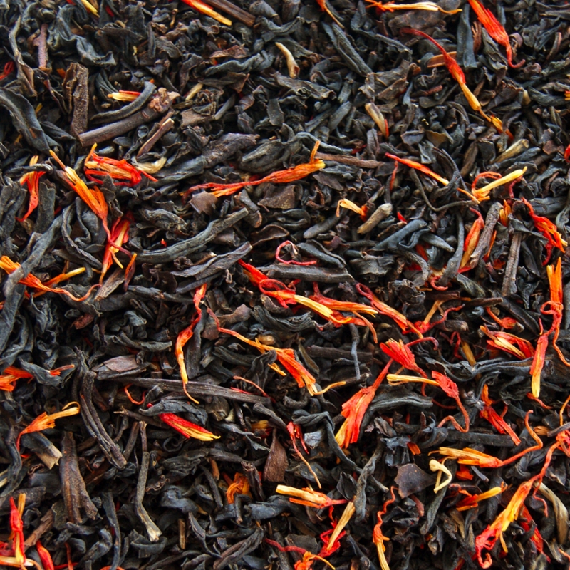 Ingredienser: Sort te (95%), saflorblomst og/eller morgenfrueblomst og aroma.