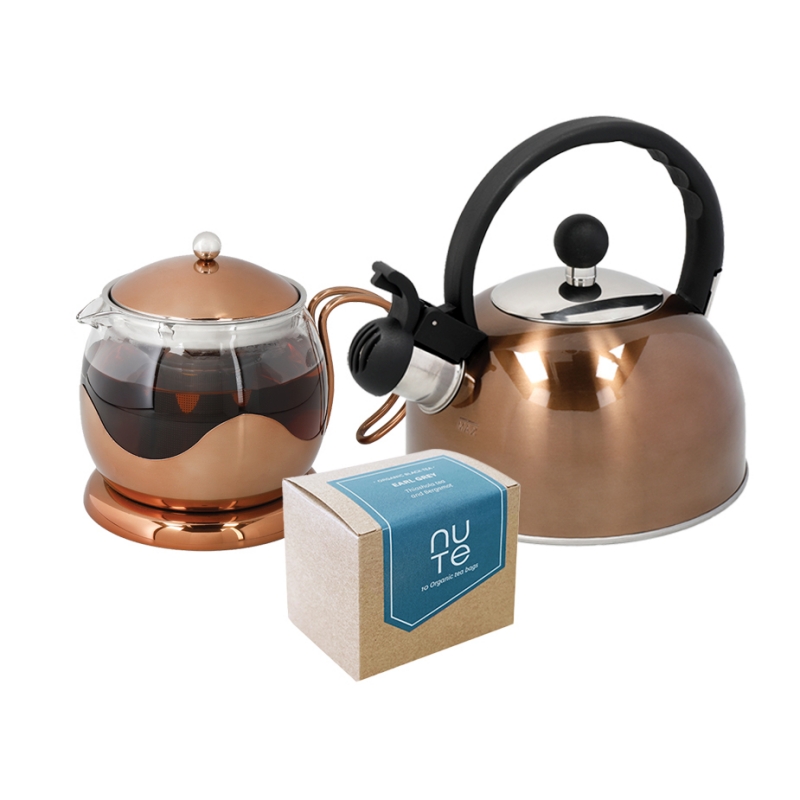 La Cafetière Izmir 2 Kop. Tebrygger Kobber Inkl. Kedel 1,3 L Kobber & 10 stk NUTE Earl Grey Økologisk Tebreve