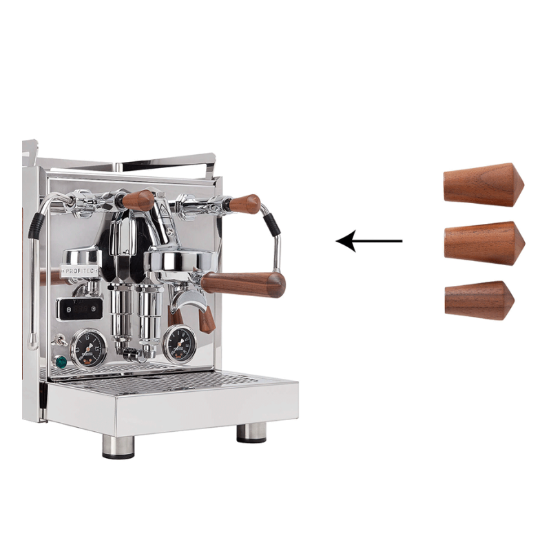 Skift grebet på dit portafilter og håndtagene på din Profitec maskine ud med disse elegante håndtag i smukt valnøddetræ.