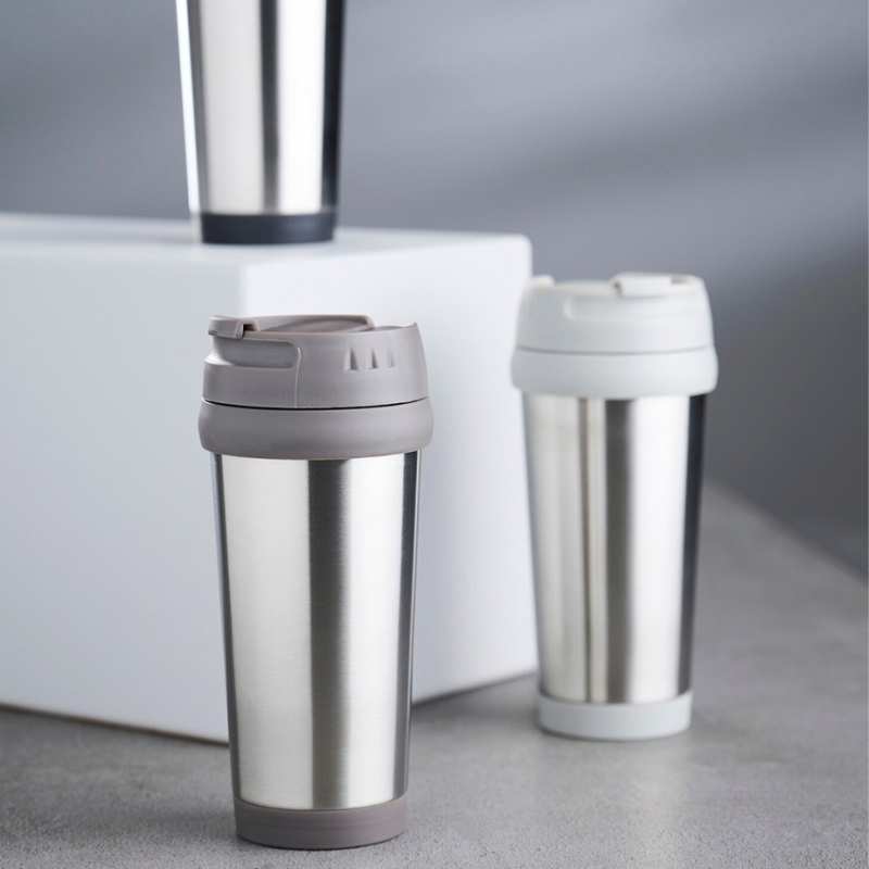 Lækkert termokrus i rustfrit stål med et praktisk drikkelåg, der gør det nemt at nyde dine drikkevarer på farten.