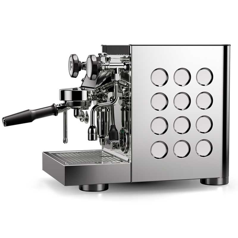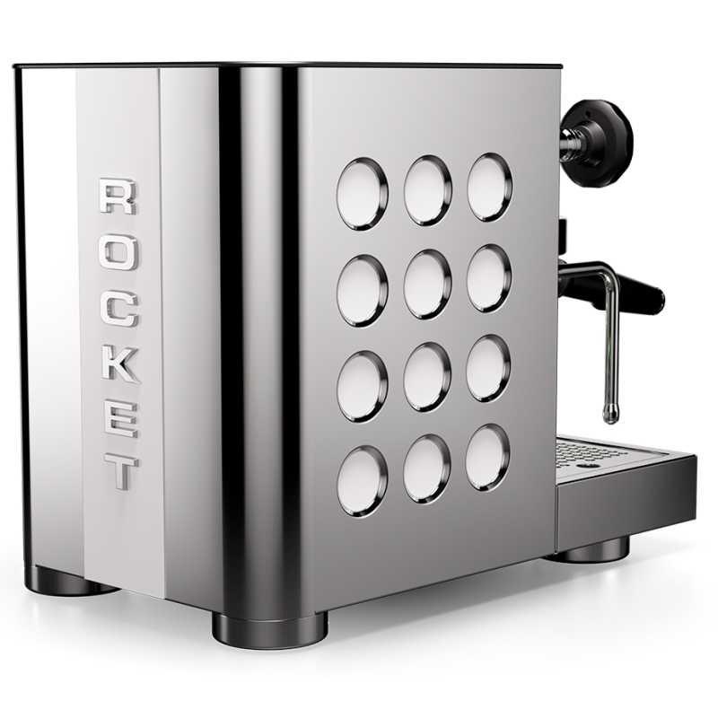 Rocket Espresso Appartamento TCA er en kompakt, men kraftfuld espressomaskine, der kombinerer klassisk italiensk design med avanceret termisk teknologi. Med en stilren stål finish og de ikoniske cirkulære udskæringer på siderne er denne maskine skabt til kaffeelskere, der ønsker café kvalitet i hjemmet.