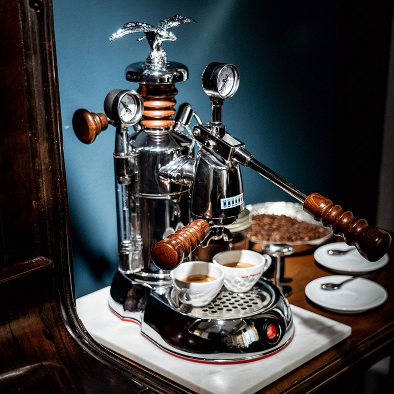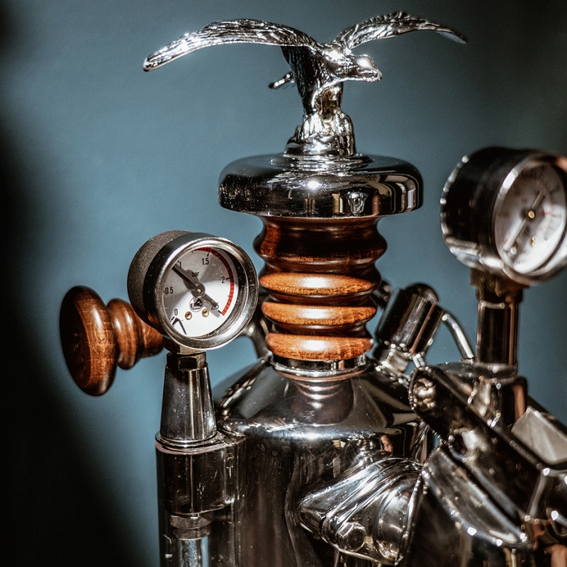 Maskinen er udstyret med den klassiske og kendte La Pavoni ørn, som er placeret ovenpå låget til kedlen og giver et eksklusivt look til maskinen.