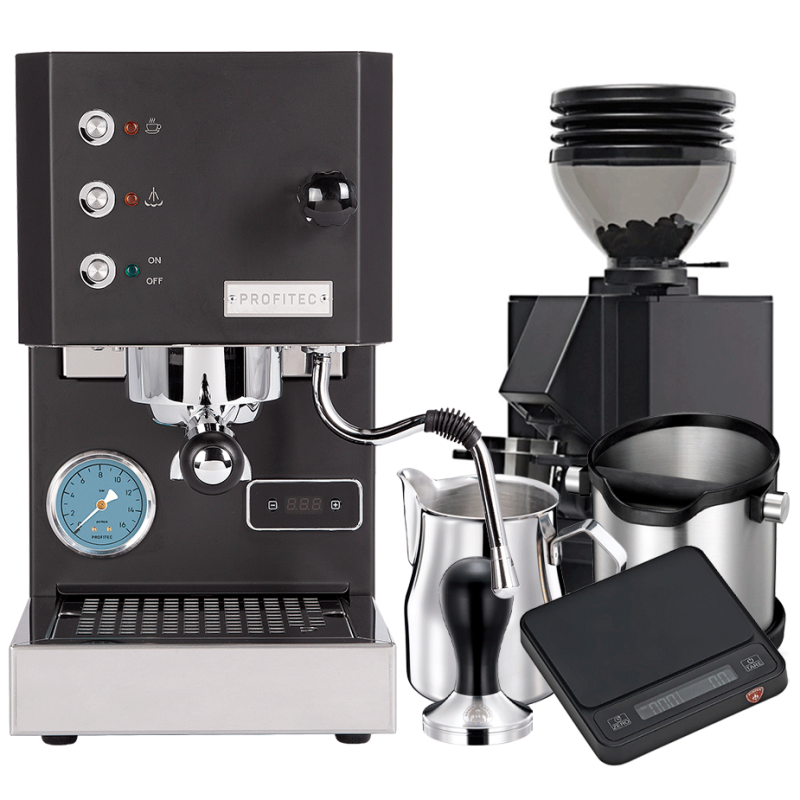 Tilbehør passer til Profitec GO Mat Sort Espressomaskine Inkl. Eureka Mignon Zero 55s Mat Sort Espressokværn, Kaffevægt & Baristaudstyr