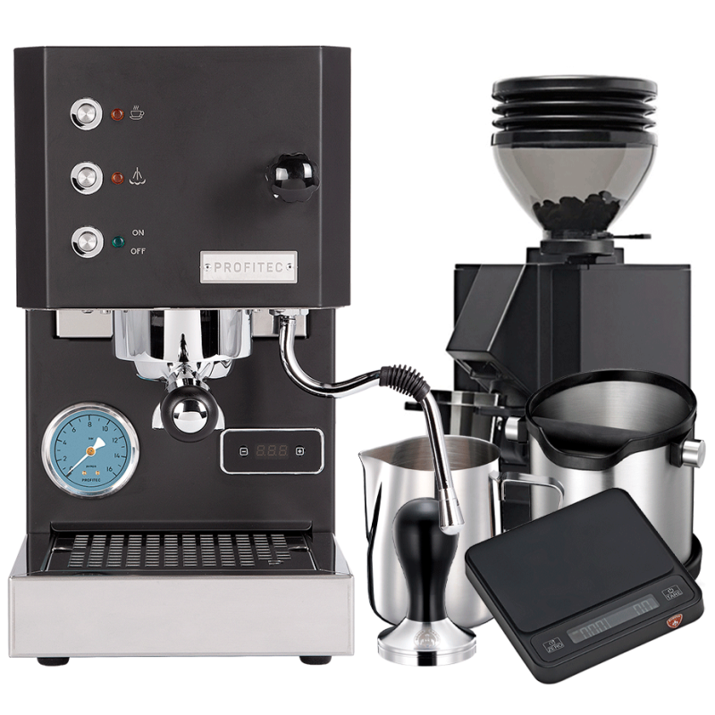 Tilbehør passer til Profitec GO Mat Sort Espressomaskine Model 2025 Inkl. Eureka Mignon Zero 55s Mat Sort Espressokværn, Kaffevægt & Baristaudstyr