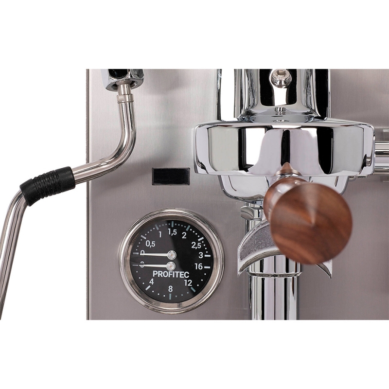 Den stilfulde dobbelte manometer gør det muligt at holde øje med kedel- og pumpetrykket hele tiden, så bryggetrykket nemt kan bestemmes og ændres, når det er nødvendigt.