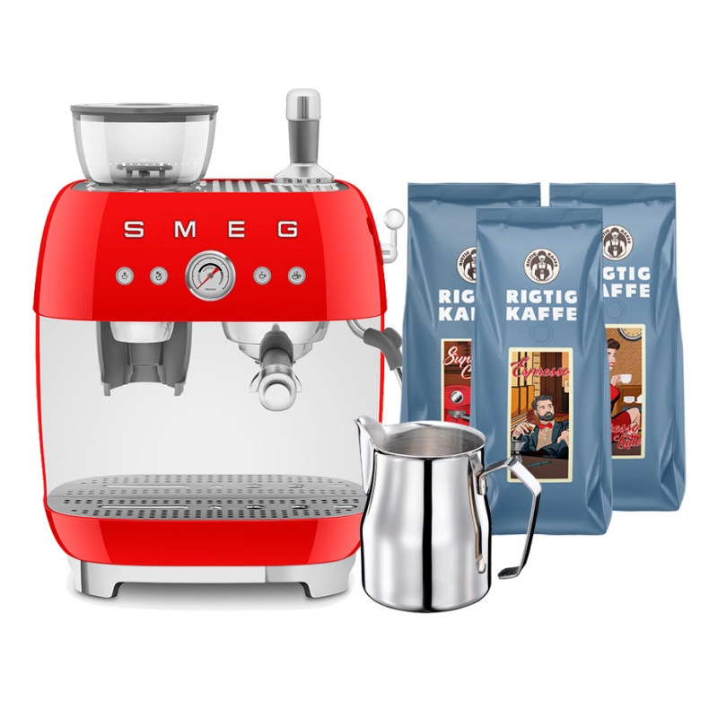 Tilbehør passer til Smeg EGF03RDEU Manuel espressomaskine Inkl. Mælkekande & 1,5kg Rigtig Kaffe