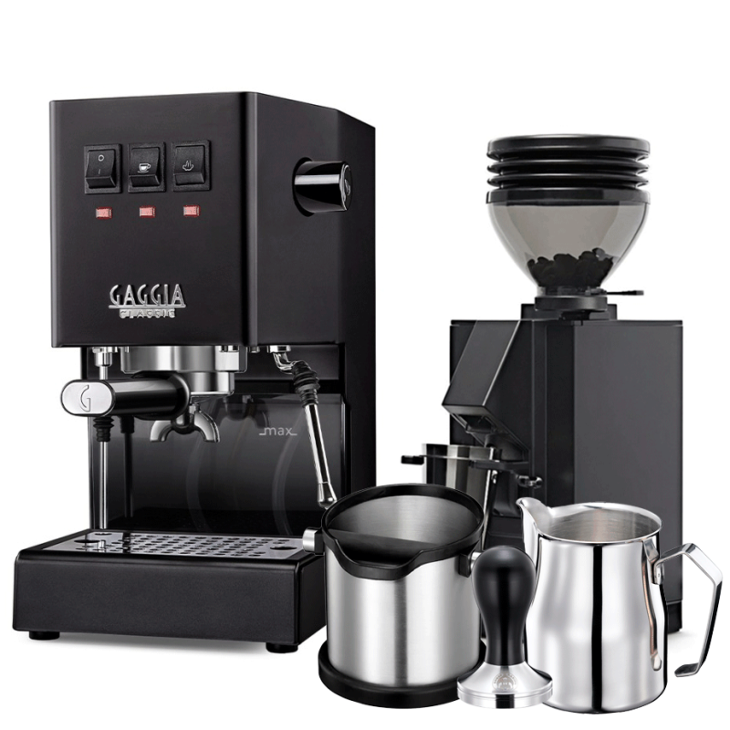 Gaggia Classic E24 Sort Espressomaskine Inkl. Eureka Mignon Zero 55s & Baristaudstyr