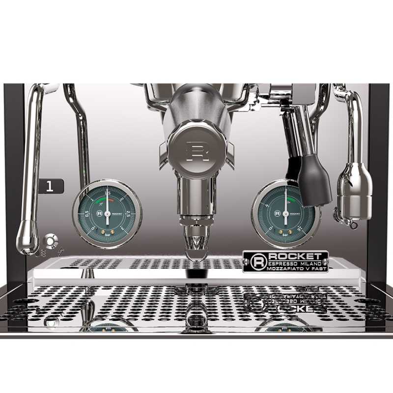 Rocket Espresso er kendt for deres håndbyggede espressomaskiner, og Mozzafiato Fast V er ingen undtagelse. Maskinen har et klassisk italiensk design med en sort pulverlakeret frontpanel og en poleret rustfri stålkonstruktion, der både er stilfuld og slidstærk. Mozzafiatos ikoniske design er inspireret af retro biler med ”roof rails,” som man bl.a. kender fra Volvo 760. De præcise håndværksdetaljer og den intuitive betjening gør det let at brygge espresso på professionelt niveau.