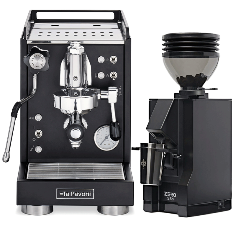 Tilbehør passer til La Pavoni Mini Cellini Sort LPSMCB01EU Espressomaskine Inkl. Eureka Mignon Zero 55s Mat Sort Espressokværn