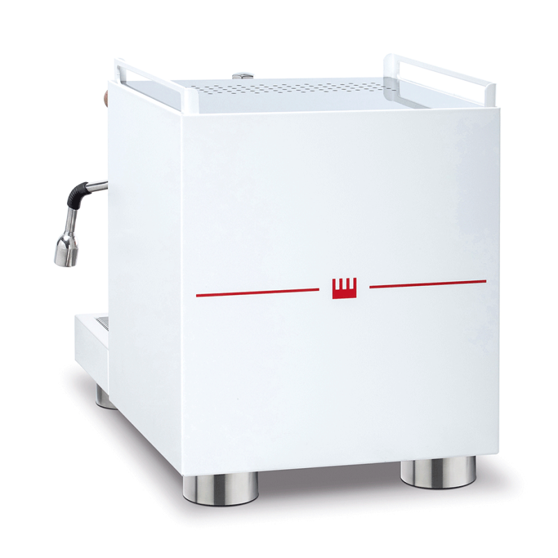 Maskinen er derudover udstyret med det legendariske E61 gruppehoved med en vægt på 4,5kg, der varmes op af vand fra kedlen, joystick system samt varmvandsudtag.