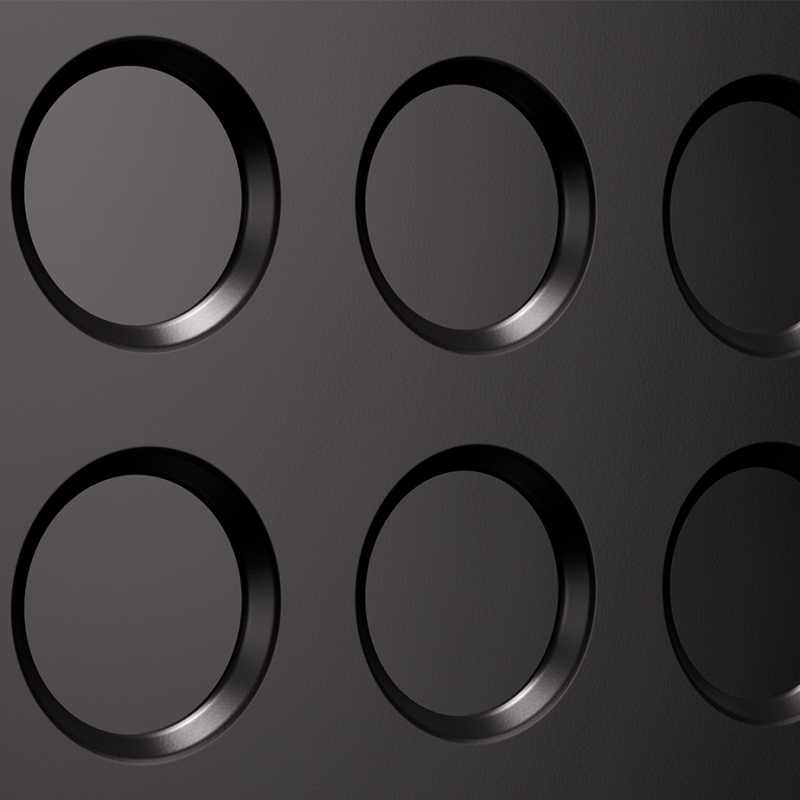 [/vc_column_text][/vc_column][/vc_row][vc_row][vc_column width="1/1"][vc_separator color="grey"][/vc_column][/vc_row][vc_row][vc_column width="5/6"][vc_column_text]Den eksklusive vibrationsdæmpende løsning reducerer malestøj med ca. 20 dB sammenlignet med konventionelle kværne og baner vejen for en ny måde at male kaffe på: nøjagtig og lydsvag.