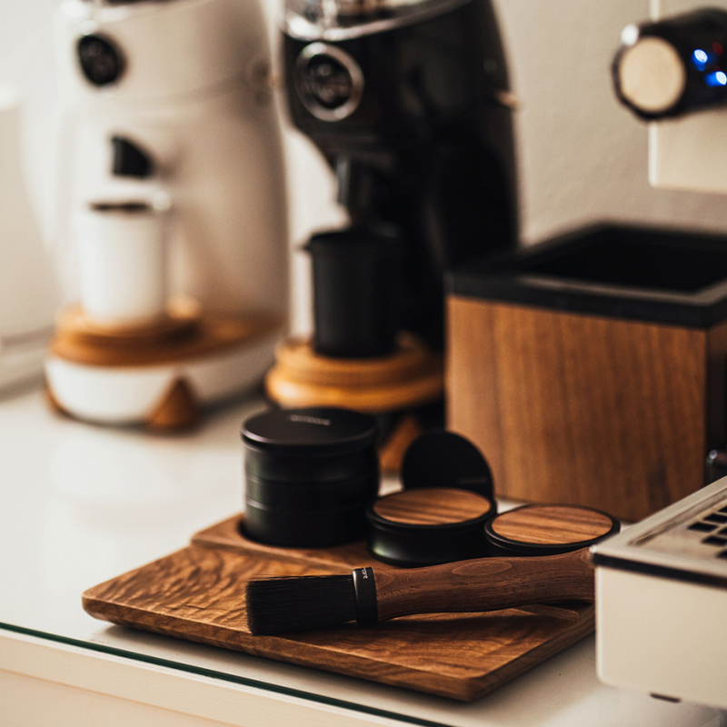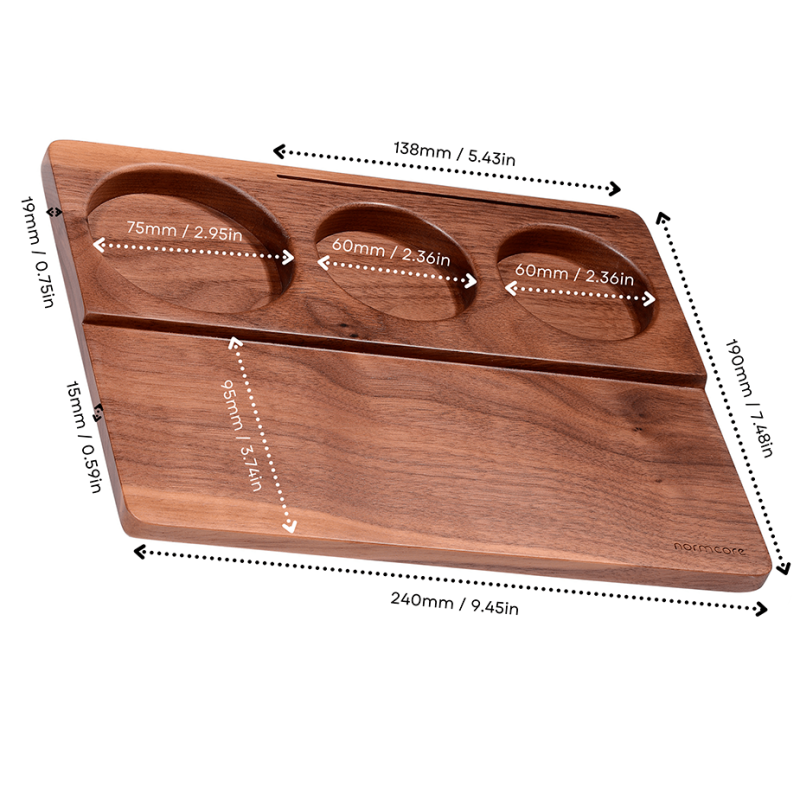 Giv din tampingstation et professionelt touch med denne måtte. Denne elegante tampermåtte er lavet af høj kvalitets valnøddetræ, hvilket ikke kun tilfører en sofistikeret æstetik til dit barista-setup, men også giver et funktionelt og robust underlag til tampingprocessen.