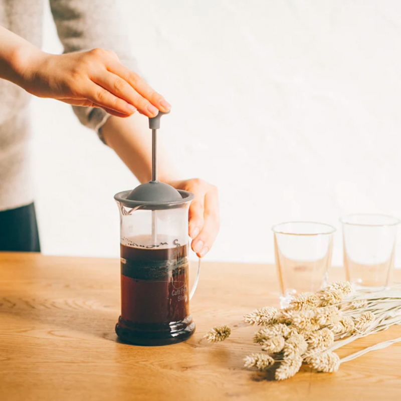 Hario Cafe Press Slim stempelkande er en enkel og tidsløs stempelkande med en kapacitet på 0,24 L. Perfekt til tilberedning af lækkert og frisk stempelkaffe.
