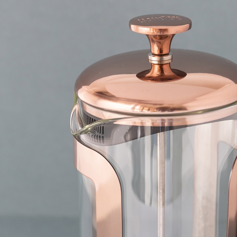 La Cafetière Roma stempelkanden er designet til at bringe et strejf af klasse til almindelig kaffebrygning med sin smukke kobbereffekt.