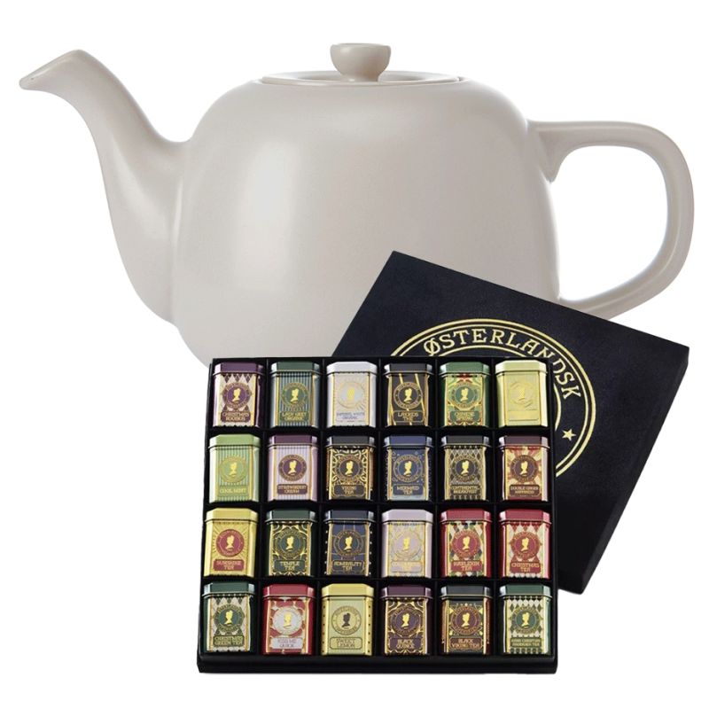 La Cafetière tebrygger er en yderst elegant og fin tekande/brygger med et smukt klassisk look. I denne pakke medfølger en fin gaveæske fra Østerlandsk Thehus med 24 stk. forskellige slags te i smukke dåser.