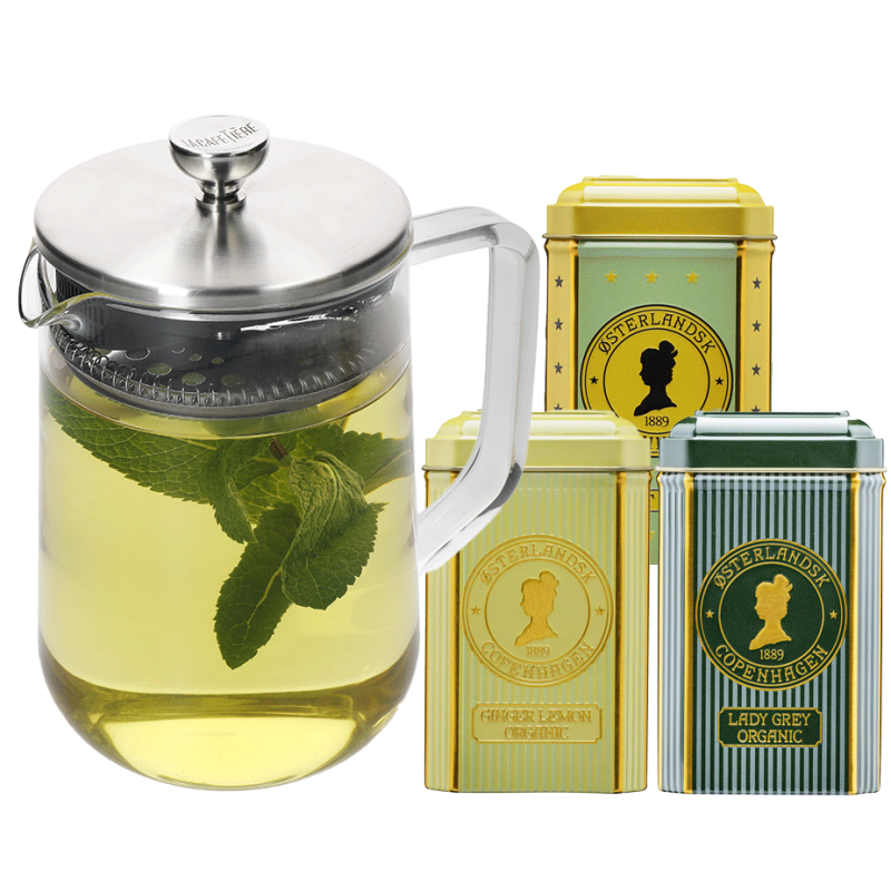 Tilbehør passer til La Cafetière 4 Kop. Tebrygger Stål/Glas Inkl. Østerlandsk Thehus Pyramidetebreve 36 stk