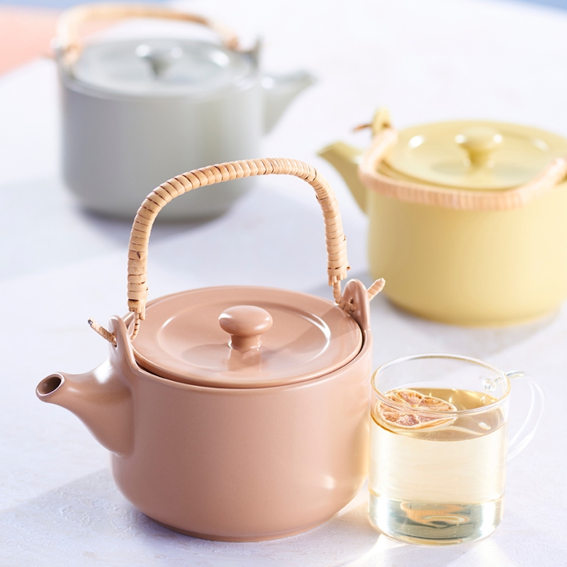 Tepotten har et smuk håndtag fremstillet i rattan. Tekanden rummer 1 liter.