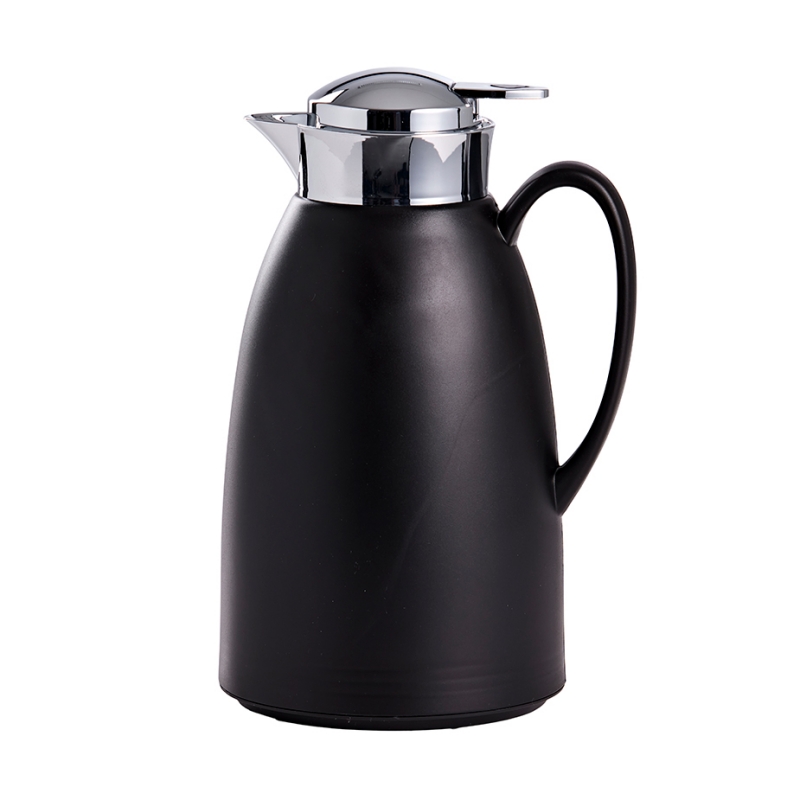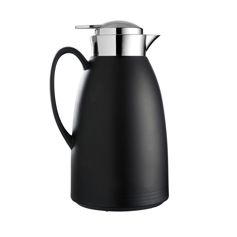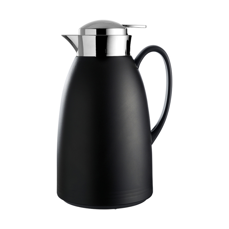 Termokanden er fremstillet i sort plast udvendig og glas indvendig.