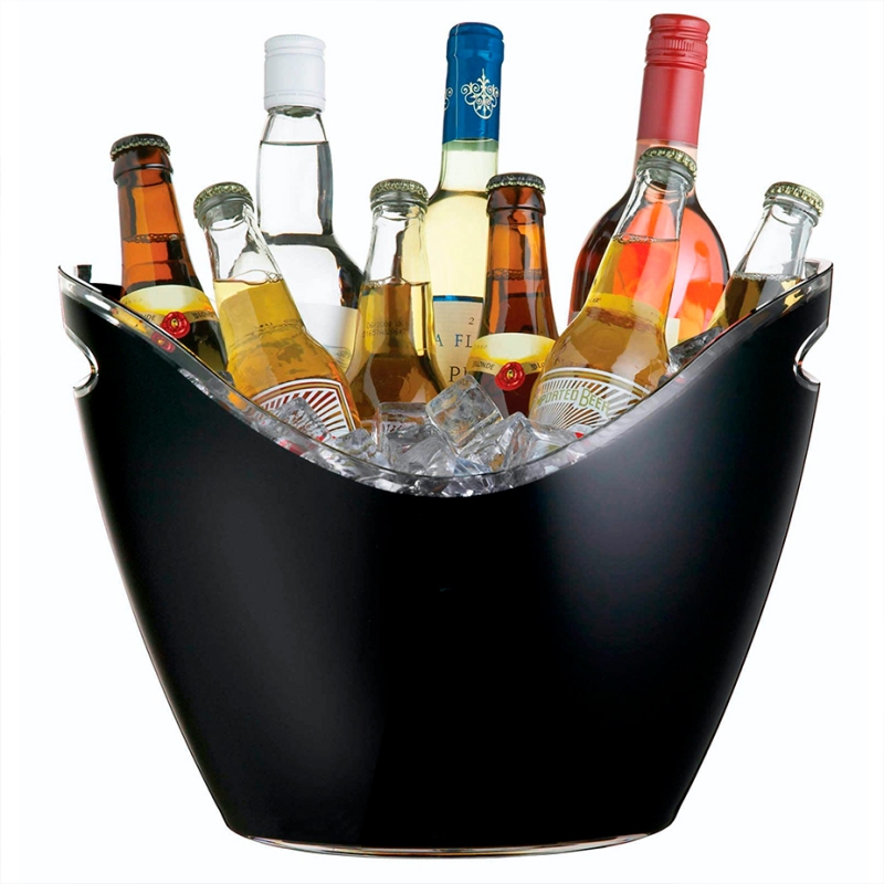 I denne vinkøler kombineres robust funktionalitet og elegante kurver for at skabe det ultimative festtilbehør. Med masser af plads til flasker og is samt to håndtag, der gør det let at arbejde med tunge løft, holder denne smarte sorte vinkøler forfriskninger afkølet og lige ved hånden, klar til enhver travl sammenkomst.